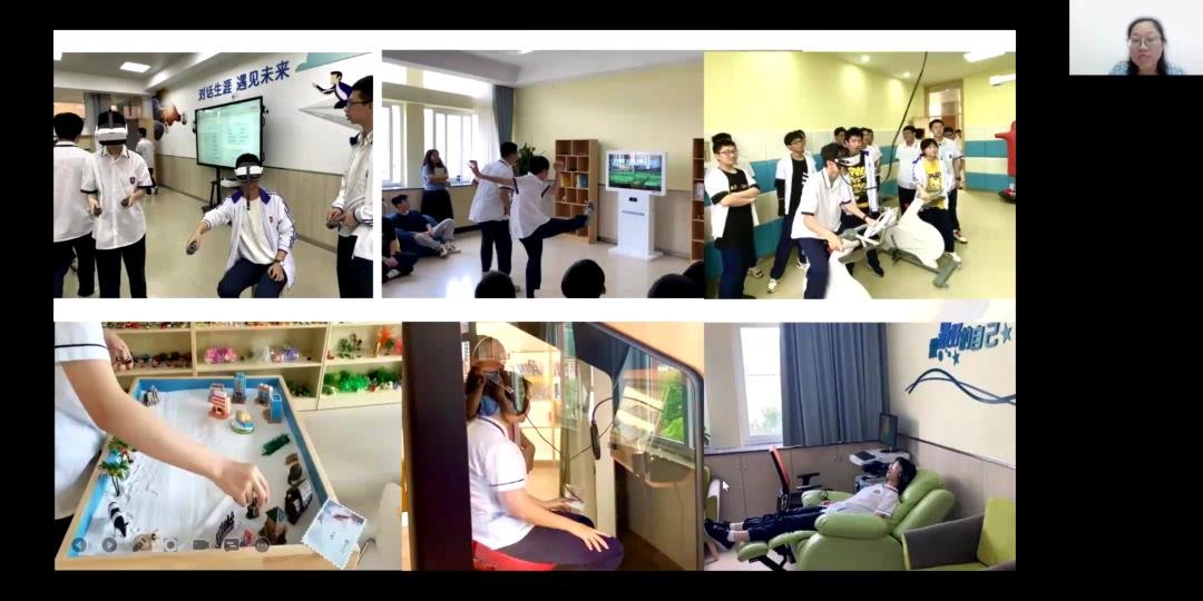 陈老师还讲述了温岭中学生涯教育近十年探索的历程。十年前温中仅有一间小小的心理咨询室,2019年学校投资200多万元升级改造了实验楼,打造了占地500多平的学生发展指导中心。目前,学生发展指导中心共包括沐心斋——心理个辅室、寻梦轩——生涯个辅室、知行驿——小型团辅室等十个功能室,并配有VR生涯体验设备、VR心理放松设备、动感单车、音乐放松椅等。此外,在“知行合一”的培养理念下,温中在98个社团的基础上,投入近300万元打造了包括人工智能研究院、人文社科研究院等在内的五大研究院,提升学生的生涯实践能力和创新能力。由此可见温岭中学对学生生涯教育的重视。