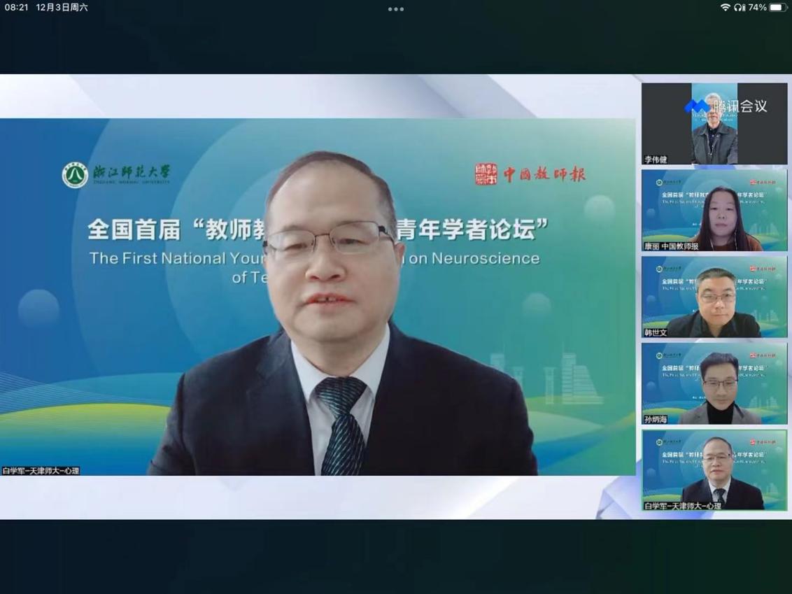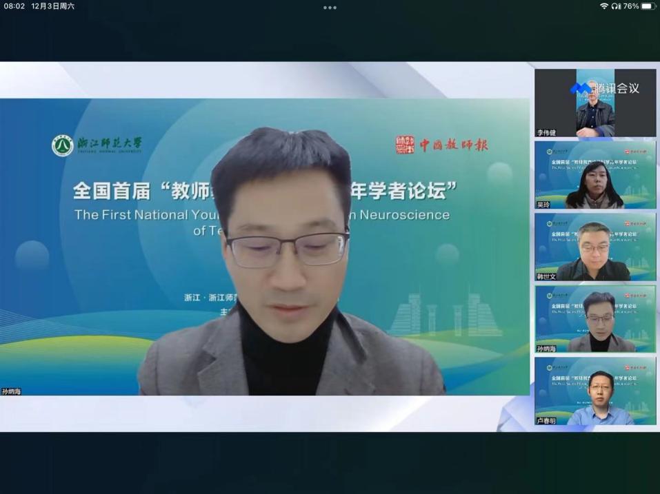 为促进教师教育的深度变革和教师培养质量的全面提升,12月3日,中国教师报和浙江师范大学教师教育学院、浙江省智能教育技术与应用重点实验室共同承办了全国首届“教师教育神经科学青年学者论坛”。本次论坛,群贤毕至,来自北京师范大学、华东师范大学、浙江大学、深圳大学等10余所高校的共15位嘉宾带来了精彩的报告。论坛以腾讯会议+中国教师报视频号直播形式进行,本次论坛引起了社会广泛的关注和参与,直播当天累计观看人次约2万人次,累计点赞人次2万多次,取得了很好的社会影响力。