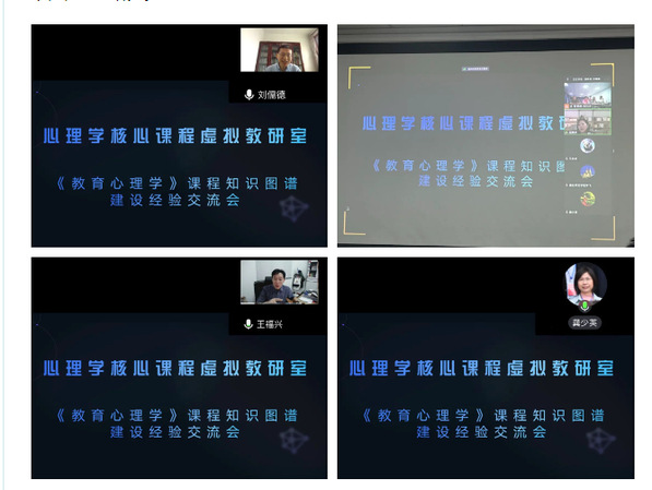 9月2日下午,教育部心理学核心课程虚拟教研室通过线上线下混合会议形式,组织召开了《教育心理学》课程知识图谱建设经验交流会。中国心理学会教育心理学专委会主任、北京师范大学刘儒德,广西师范大学教育学部副部长、心理学科负责人张姝玥,华中师范大学新葡萄8883龚少英和王福兴线上参会。学校本科教学部部长、教务处处长陈敏,副处长徐展斌,虚拟教研室负责人李伟健,新葡萄8883院长孙炳海,教育学院副院长王良辉出席现场会议。此外,通化师范学院李飞、浙江师范大学陈海德、李锋盈、姚静静、房娟、李华云、高崚峰等虚拟教研室骨干成员,以及智慧树公司服务团队代表出席了本次会议。学院副院长贾磊主持本次交流会。
