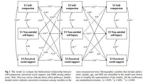 论文来源:Yang, Q., Xie, R., Li, J., Zhang, R., Ding, W., & Li, W. (2023). The Mutual Relationship Between Self-Compassion, Perceived Social Support, and Adolescent NSSI: A Three-Wave Longitudinal Study. Mindfulness, 1-11.