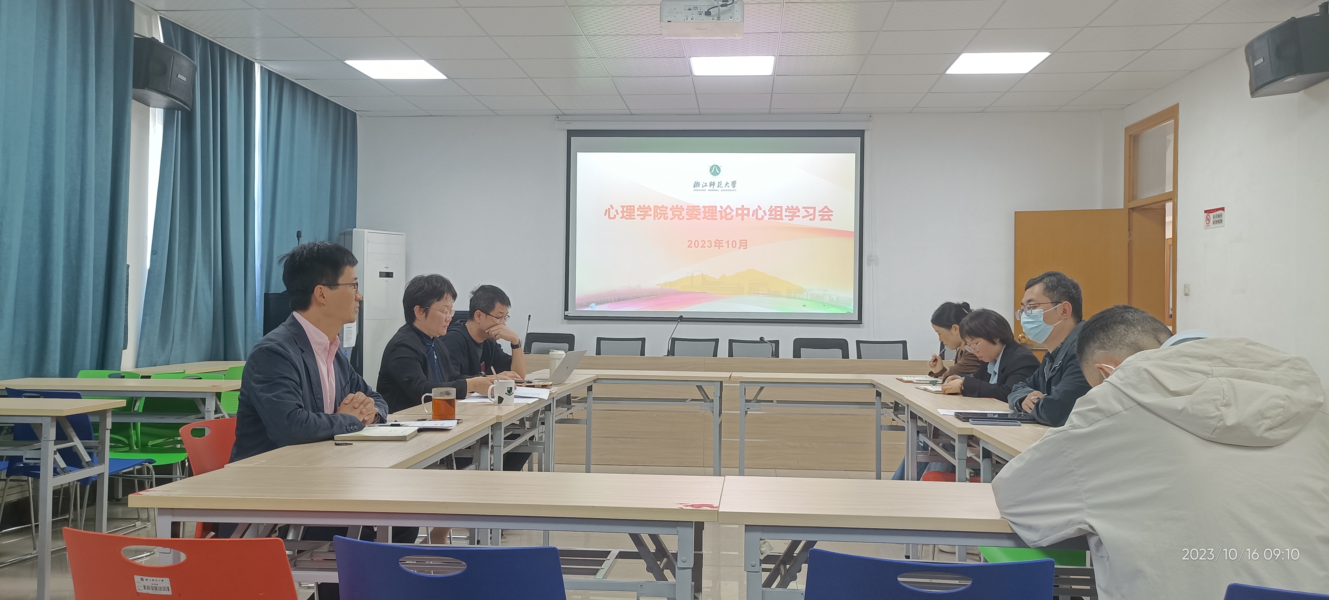 10月16日上午,新葡萄8883党委书记马莉主持召开党委理论学习中心组扩大会议,专题学习习近平总书记考察浙江重要讲话精神。院长孙炳海、副院长贾磊、党委委员李新宇、詹沛达等理论学习中心组成员等参加学习,心理学硕博士研究生联合党支部书记翟羽佳同学列席会议。