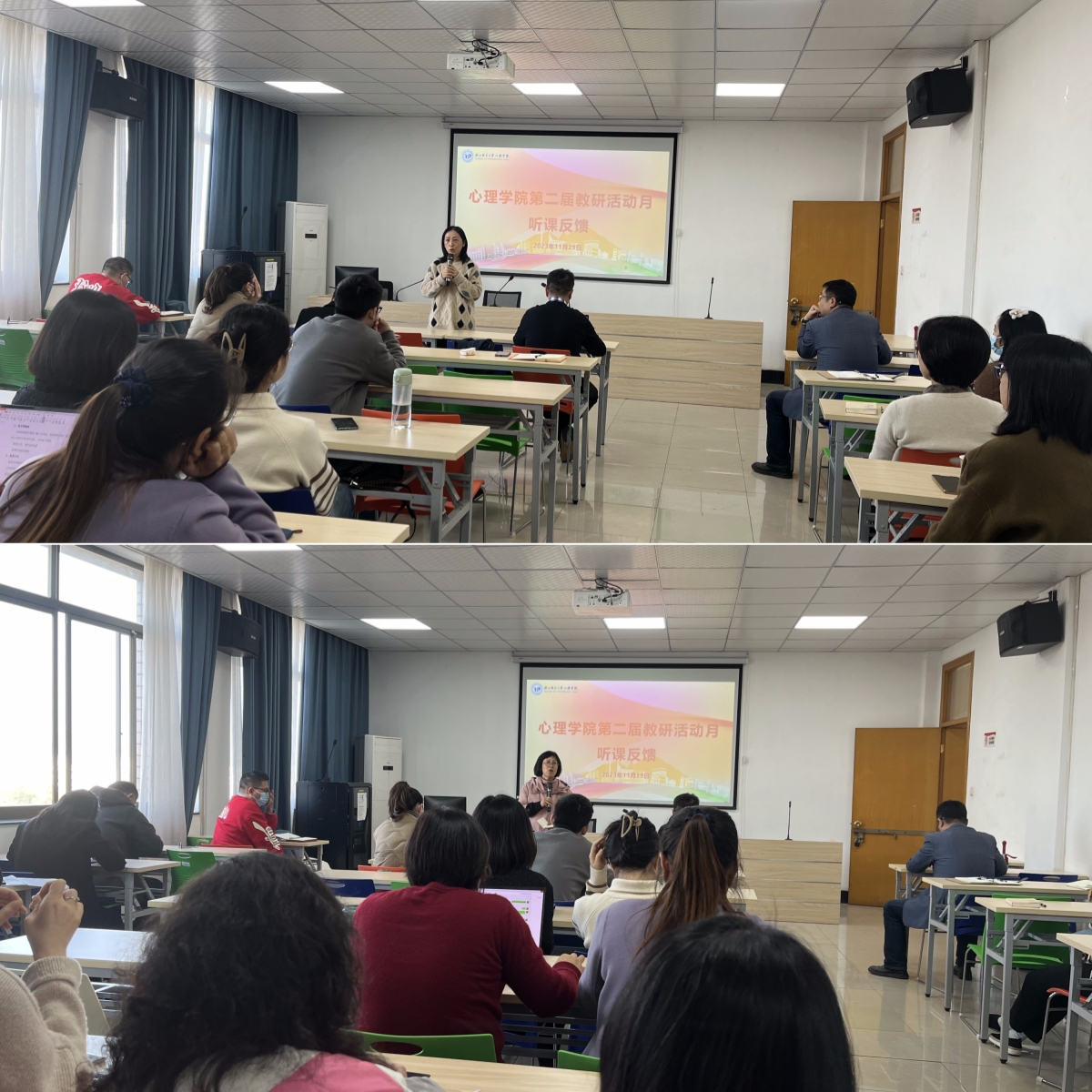 心理学》、《社会心理学》、《普通心理学》等10门课14位老师进行公开课展示,其中包括国家级、省级一流课程4门,授课老师涵盖了学院老中青教师。以教学副院长贾磊领头,学院教学督导、青年教师、骨干教师以及教务办工作人员参加听课,并进行了课后教学研讨和反馈。