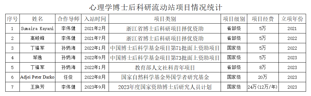 心理学博士后科研流动站一直重视教师教育研究,拥有教师教育神经科学为国内首个交叉学科博士点,是教育学、心理学、神经科学交叉融合形成的学科方向,应用行为科学和神经科学手段探索教育的生物学规律,特别是大脑的活动规律,以科学实证出发应对教师教育领域中的重大需求。流动站在学科带头人李伟健教授带领下,组建了一支视野开阔、学术水平高的研究团队,数十年来在教师教育神经科学与心理健康基础研究领域不断取得显著成绩。近年来,新葡萄8883高度重视博士后队伍建设工作,不断加大博士后招收和培养力度,先后出台博士后院长基金资助制度、博士后合作导师助理制度和基金研究定期指导制度,推进博士后流动站工作的新突破、新跨越。目前,流动站在站博士后10余人,建站以来已有6名博士后获7项科学基金资助。