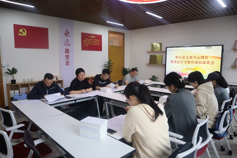 2024年4月17日下午,新葡萄8883于17幢711会议室召开党支部书记例会暨党纪学习教育启动部署会。学院党委书记马莉主持会议,各师生党支部书记参会。