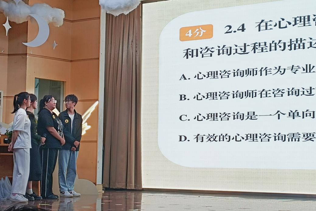 “浴光同行”环节考验的是参赛人员的心理知识储备量及临场应变能力。我院队伍在本环节表现出色,积极作答,愈战愈勇,勇夺40分满分的成绩,成为第一环节唯一满分队伍。