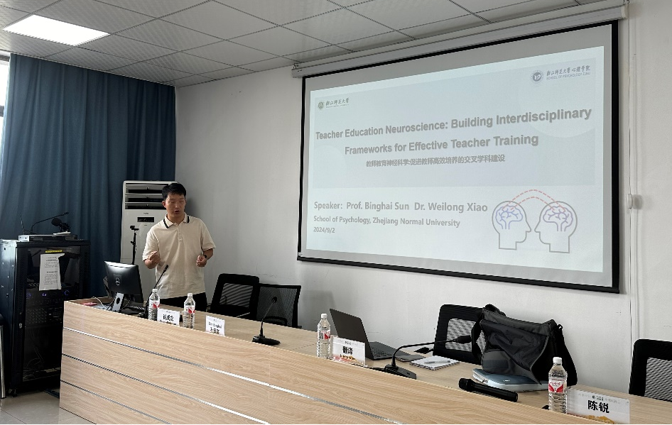 肖威龙博士为研修班学员们进行了“教师教育神经科学:促进教师高效培养的交叉学科建设”的专题报告。肖威龙向研修班成员们阐述了教师教育神经科学的交叉学科特性,并详细介绍了基于行为实验、脑电、近红外和多人超扫描等研究方法在真实课堂情景下的教师教育神经科学研究成果。研修班成员们积极参与讨论,围绕“共情如何培养”、“如何培养优秀教师”、“教师教育神经科学的基础研究成果在优秀教师培养中的应用”等议题展开了热烈的讨论。