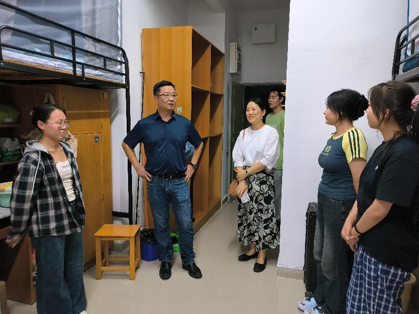 9月15日晚,浙江师范大学党委副书记傅关福来到新葡萄88832024级新生寝室进行走访慰问。新葡萄8883院长孙炳海、党委书记马莉、联合教育学院党委书记徐展斌陪同走访。