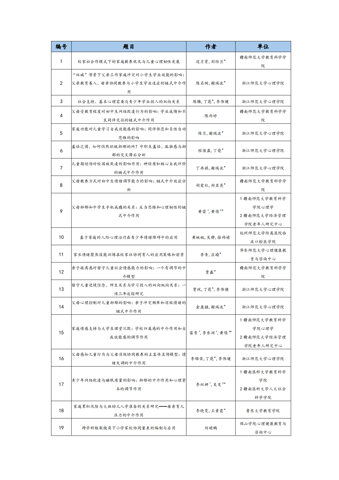 分论坛五主题为家庭关系与教养行为,西南大学陈群林副教授、浙江师范大学刘羽博士主持分论坛。浙江师范大学邵晓璐,温州大学王云南,仙居县白塔镇中心小学陈凤丹,澳门大学乔巾惠,北京林业大学高元圆,桐乡市洲泉中心小学周洁、浙江师范大学常朝夕为分论坛作报告。