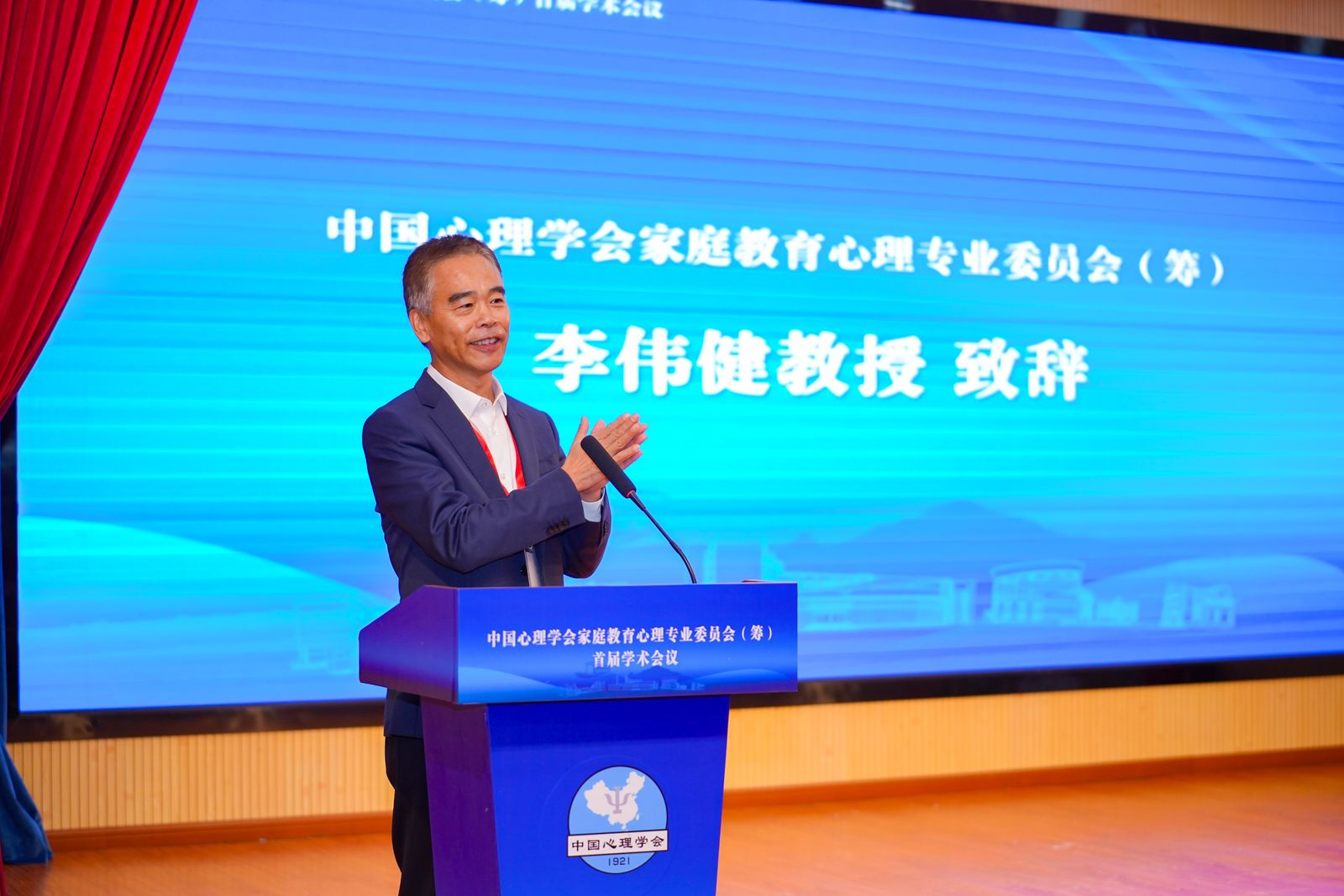 中国心理学会家庭教育心理专业委员会筹委会筹建负责人李伟健教授代表委员会对各位参会代表的到来表示热烈欢迎,并指出家庭教育已成为关乎民族振兴与社会进步的重要议题。中国心理学会家庭教育心理专业委员会的成立是紧密围绕这一议题的重要举措,也是迈向家庭教育心理学新征程的重要起点。最后,提出了专委会未来的研究和工作方向,并表达了对家庭教育心理学未来发展的美好愿景。