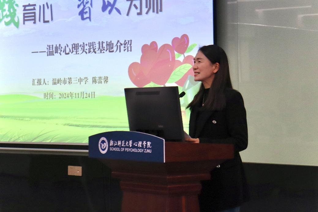 义乌市春晗学校贾斌芳、温岭市第三中学陈蕾馨作为优秀实践指导教师代表分享了在心理健康教育实践指导中的宝贵经验和深刻感悟。