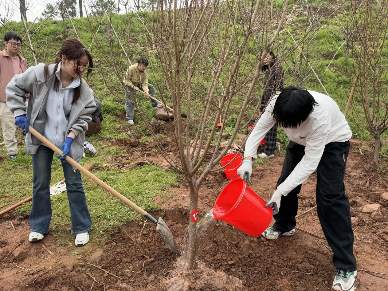 凛冬悄然退场,春风再度拂临。浙江师范大学第47届植树节活动于听风坡后举行。我院辅导员董俐伶老师带领六名同学,共赴这场与绿色的约会。