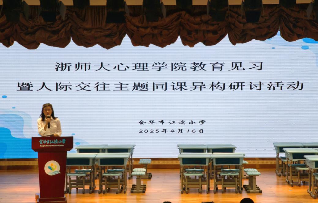 活动由江滨小学德育处副主任金程主持。校长石如意致欢迎辞后,江滨小学副校长曹华锋以《定格15度——你的心中每天开出一朵花 ,让每一寸阳光都有小欢喜》为主题,详细介绍了学校心理健康教育的创新实践。通过"双减"政策落实和"三开三减三增"等教学策略,江滨小学构建了减负增效的育人环境;依托"江风忻语"心理辅导室的专业干预和心理健康筛查机制,实现了危机预防与个案辅导的闭环管理。这些特色实践为见习学生提供了宝贵的学习经验。