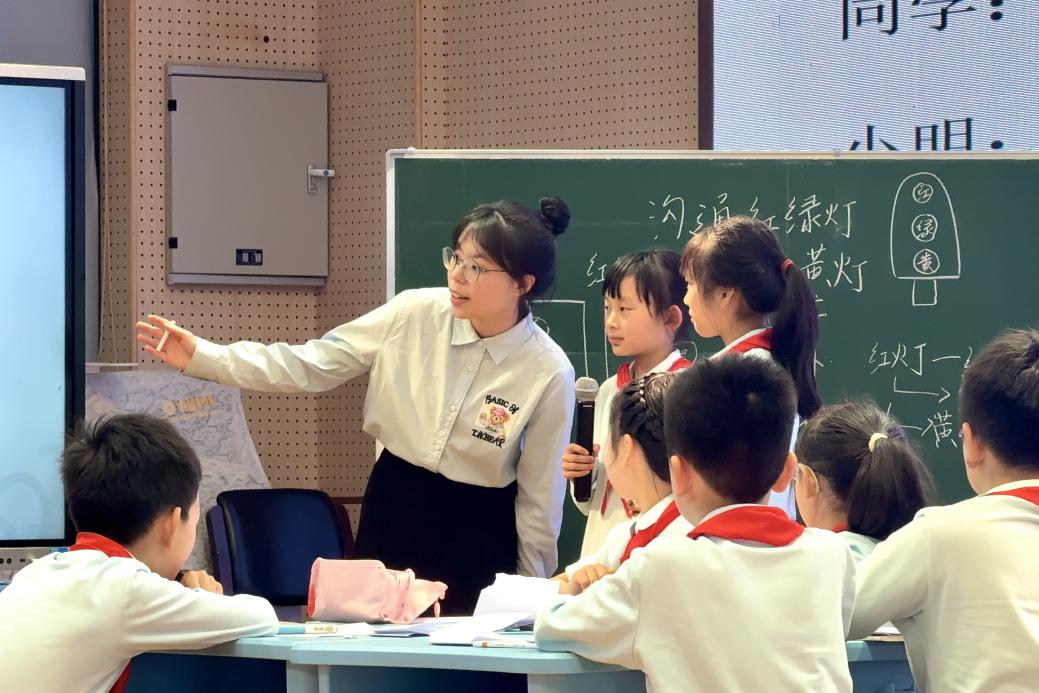新葡萄8883官网AMG2022级本科生黄瑞瑜则为四(8)班学生带来了《沟通红绿灯》心理课。她以趣味折纸活动引入主题,通过角色扮演和小组讨论,帮助学生区分不同沟通方式,并掌握"沟通红绿灯"技巧。黄瑞瑜的课堂首秀展现了扎实的专业素养和教学潜力。