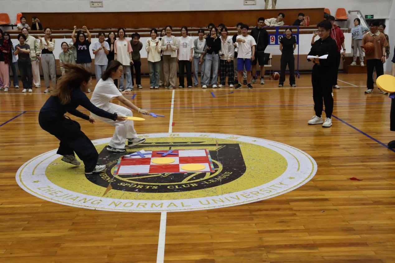 比赛现场热闹非凡,由班级为单位组建的师生队伍纷纷亮相,展开了激烈的角逐。在团体接力赛中,彩色的毽子在围成圆圈的师生间轻盈传递,跳绳、夹篮球时的轻快步伐与夹钢珠的稳健手法相得益彰,师生们互相鼓励、配合无间;在三子棋的智慧对决中,师生们时而凝神思考,时而快速移动,在竞技中碰撞出智慧的火花。整个比赛过程洋溢着轻松愉快的氛围,师生们在运动中增进情谊,在互动中收获快乐。