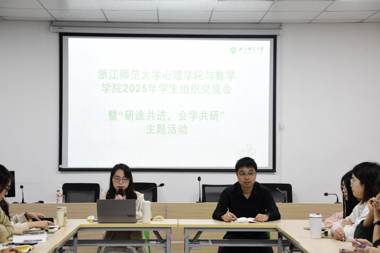 会议伊始,主持人对数学学院参会成员表示热烈欢迎。新葡萄8883学生会主席陈欣欣、数学学院学生会主席田涛依次发言,介绍各自的研会组织架构、参会人员、以及各部门工作内容,并表达了对活动的期待与对两院合作交流的展望。