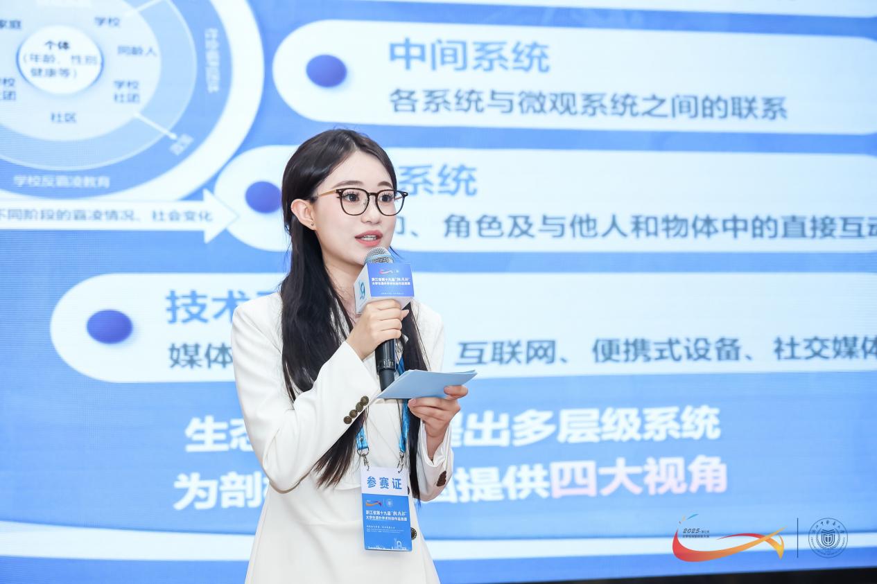 5月16-18日,浙江省第十九届“挑战杯”大学生课外学术科技作品竞赛在浙江中医药大学举行,我院应用心理学231班窦苑星领衔的项目《从心出发:校园霸凌施暴者心理特征调查、建模及风险识别》喜获金奖,创造了新葡萄8883在该项赛事的历史最好成绩!