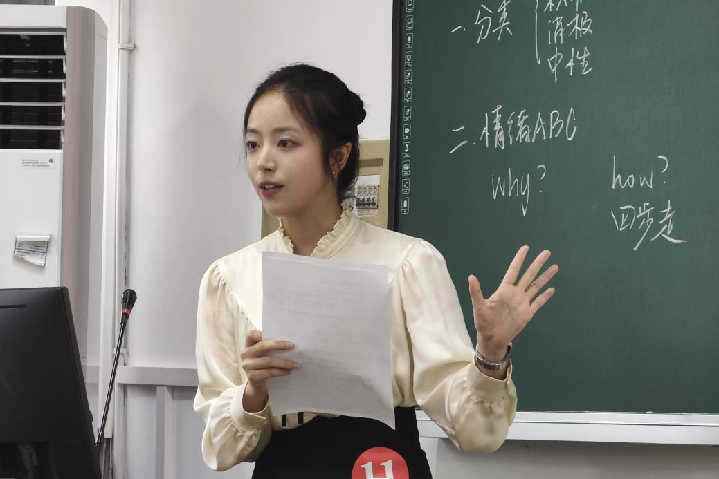 最后的答辩环节,评委们围绕教学设计、课堂生成、教育心理学理论应用等维度展开提问。选手们沉着应对,既展现了扎实的理论功底,也体现出对教育实践的深刻反思。评委谢芳老师总结道:“本次大赛不仅是技能的比拼,更是教育理念的碰撞,选手们用专业与热忱诠释了心理学子的风采。”