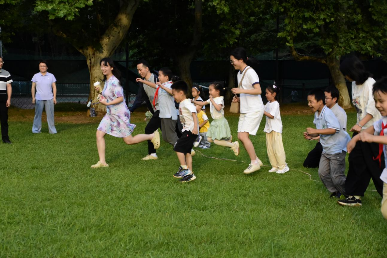 本次游园会精心策划“粽子蹲”“一二三木头人”“表情传递大作战”“举手游戏”四大主题活动,旨在为教职工家庭打造一场沉浸式童趣体验。活动现场,大草坪化为欢乐的海洋:孩子们手拉手围成圆圈,在“粽子蹲”的口号声中嬉笑奔跑;家长与孩子随着音乐自由舞动,在“一二三”的计时瞬间定格成千姿百态的“木头人”;表情传递环节中,夸张的动作与猜词成功的欢呼此起彼伏;举手游戏里,孩子们时而专注思考、时而手忙脚乱的模样引得全场捧腹。活动现场欢声笑语不断,教职工们重拾童心,与孩子默契配合,尽情享受亲子时光。