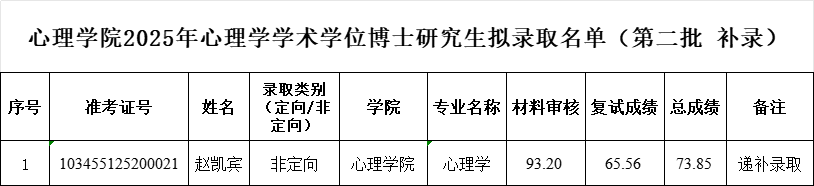 新葡萄88832025年心理学学术学位博士研究生拟录取名单(第二批 补录)