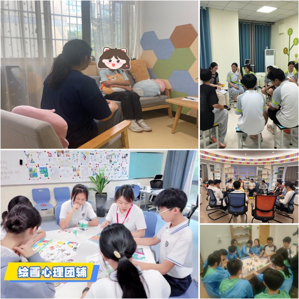 在实践校心理教师指导下,见习学生走进心理咨询中心,了解各校心理中心的建设与运作流程,尝试和学生个案开展倾听、提炼信息、形成咨询框架,同时设计和开展了若干主题的团体辅导。