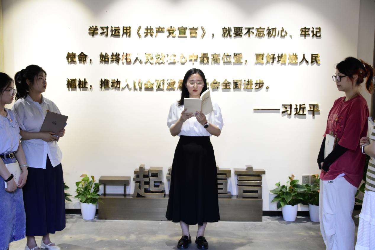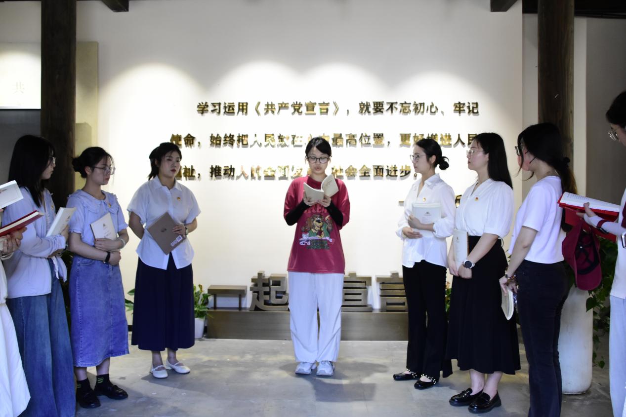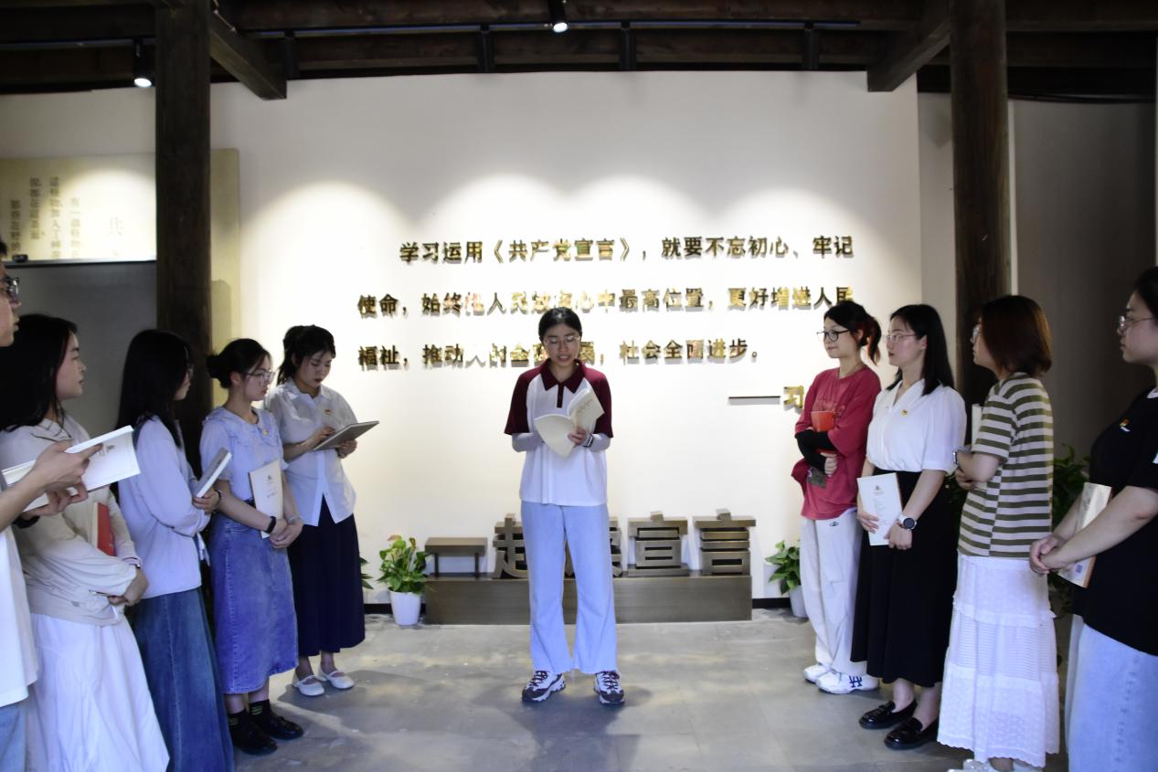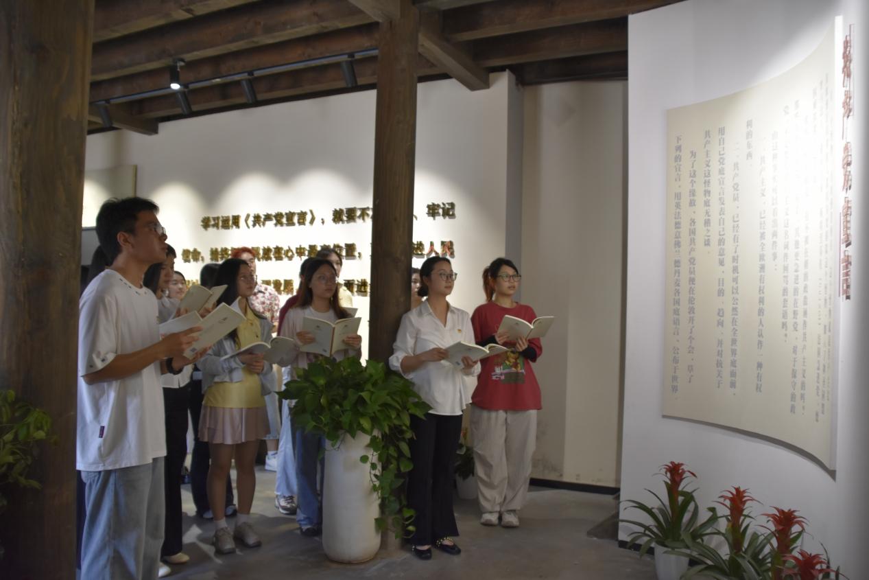 作为刚加入组织的新党员,在陈望道先生工作过的地方宣誓并重温《共产党宣言》的经典篇章,字字句句如精神灯塔。我定当铭记今日所见所感,赓续红色血脉,以陈望道先生为榜样,坚定理想与初心,将“真理的甘甜”转化为不懈奋斗的动力,努力提升本领,服务人民群众,为实现中华民族伟大复兴贡献自己全部力量!
