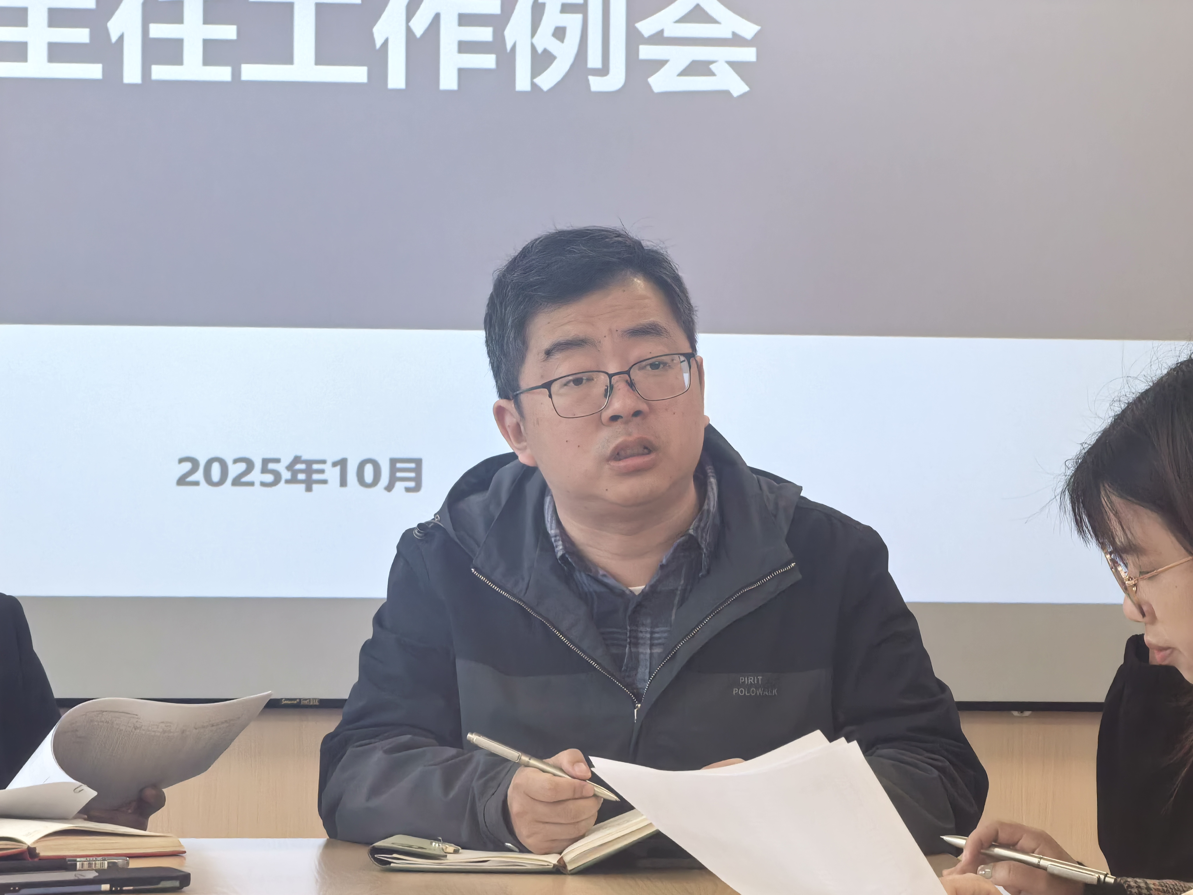 施丽君老师详细介绍了学生大学四年的教学工作安排,希望班主任提前引导学生做好学业规划,并就近期教学安排与25级创新实验班选拔工作进行说明。