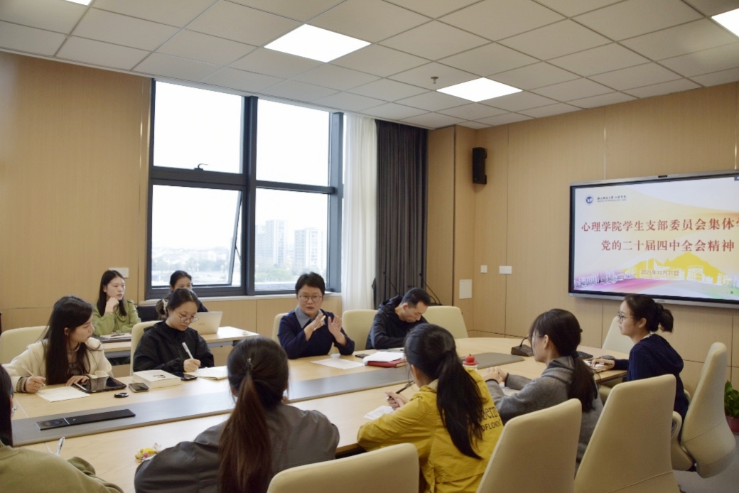 首先,与会人员共同学习了党的二十届四中全会精神,并结合心理学专业特色,深入研讨如何将党的创新理论有效转化为指导学生党建、赋能专业发展的实践路径。会议强调各学生党支部要切实发挥战斗堡垒作用,努力将党建优势转化为育人优势,推动学生成长与学科建设深度融合、同频共振。