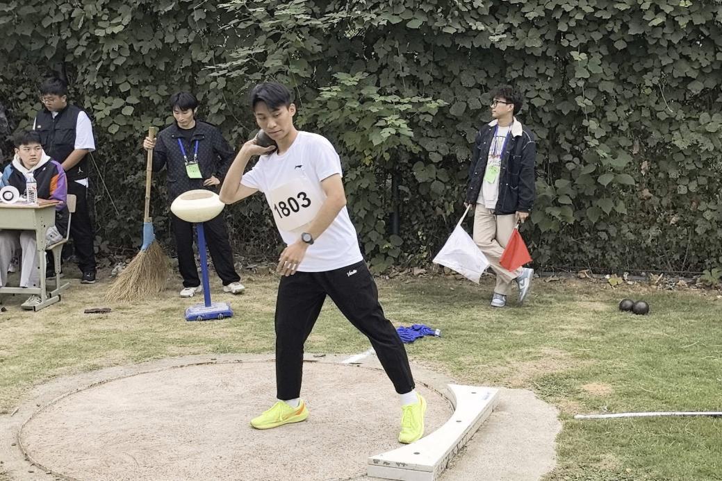 次日赛事中,新葡萄8883运动健儿继续在田径与游泳双线拼搏。心理251班薛梓浩站上男子5000米赛道,面对漫长征途与强劲对手,他始终稳定节奏、不言放弃,最终以小组第二的成绩冲线,赢得全场喝彩;男子铅球赛场上,队员们凝神聚气、奋力一掷,不断挑战自我极限,即便未获名次,那份全力以赴的姿态依旧动人。