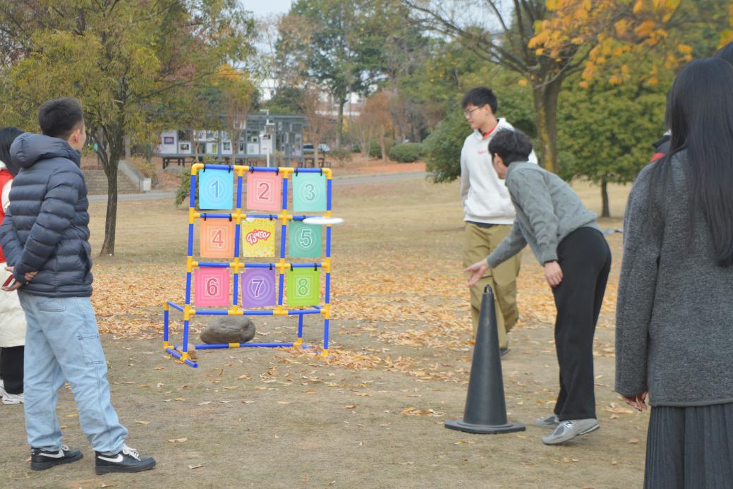 体育与健康科学学院“九宫格飞盘转转乐”:将投掷技巧与计分竞技有机结合,现场气氛活跃热烈。