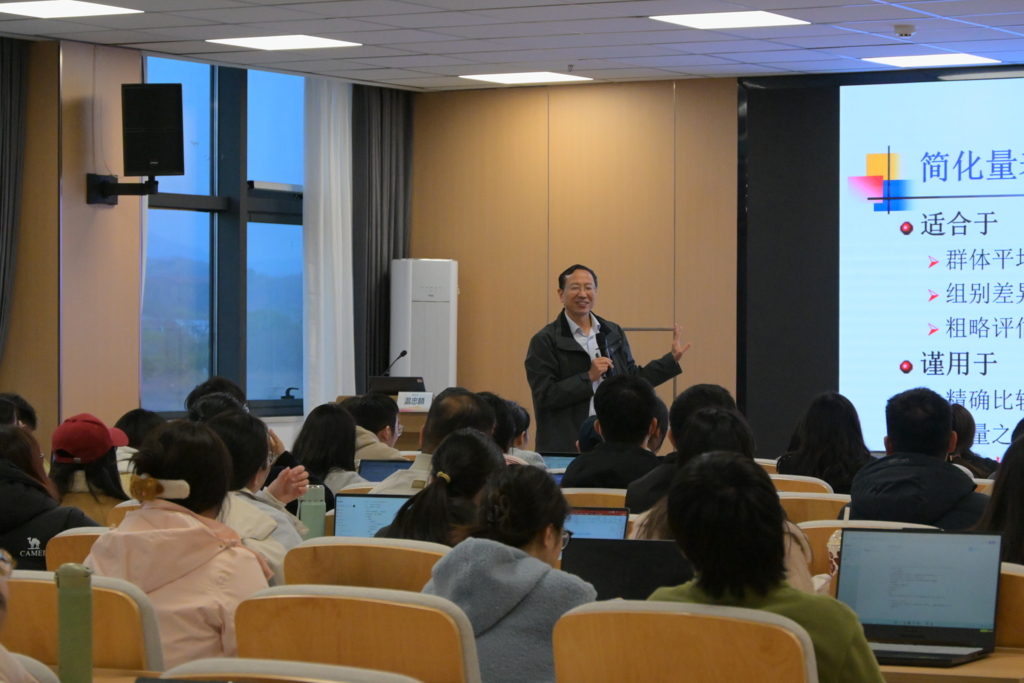 针对问卷质量评价的核心指标,温忠麟教授重点剖析了合成信度与同质性系数,并对学术界广泛使用的α系数进行了批判性解读,指出其虽为“屹立不倒的信度标杆”,但在应用中仍需注意其前提条件与局限性。他通过具体案例,系统展示了如何综合运用多种信效度指标科学评价问卷质量。整场讲座内容翔实、逻辑清晰,紧密融合了计量心理学前沿理论与实际研究操作,为在座师生开展问卷编制与评价研究提供了系统、深入的方法论指导。
