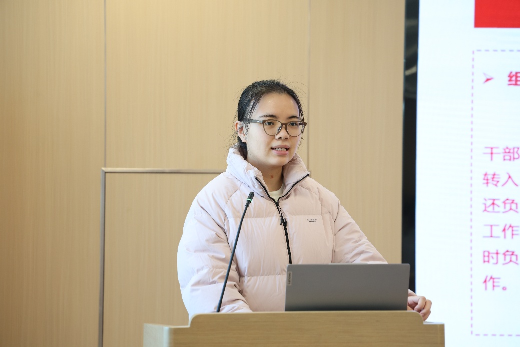 学生会办公室部长陈意首先围绕“礼仪礼貌”展开分享,她结合日常工作场景,从线上沟通、电话交流、值班规范、参会礼仪等方面详细阐述了学生干部及干事应具备的基本素养,强调礼貌是服务同学的起点,也是展现组织形象的重要窗口。