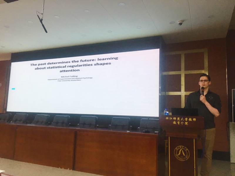 2019年5月24日上午,17幢112报告厅座无虚席。荷兰阿姆斯特丹自由大学实验与应用心理学系的Michel Failing博士受我系系主任李新宇博士的邀请,作了题为“The past determines the future: learning about statistical regularities in the environment shapes attention”的学术报告,向在场的心理系师生展示了其开展的一系列高水平研究。