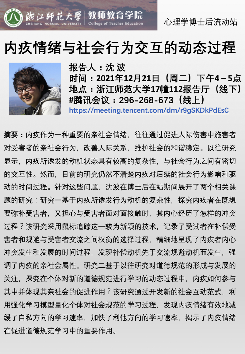 博士后报告系列:内疚情绪与社会行为交互的动态过程