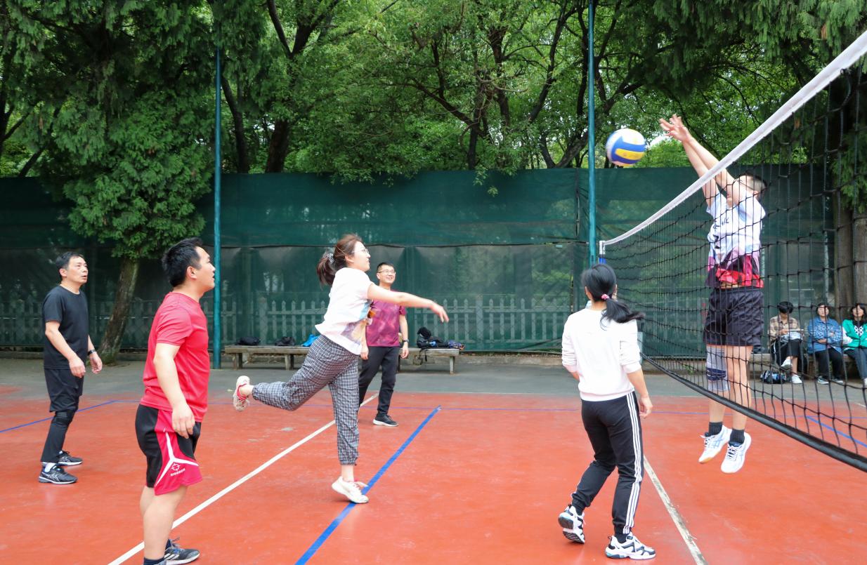 比赛采用三局两胜的规则。两个学院分别派出两队老师,在两个场地同时进行比赛。第一局比赛,大力的发球、高高跳起的拦网、一声声“我来接”、“我打”的配合以及相互之间的加油喊好,让教育学院的老师们打出了气势,分别以21比11与21比17拿下第一局。