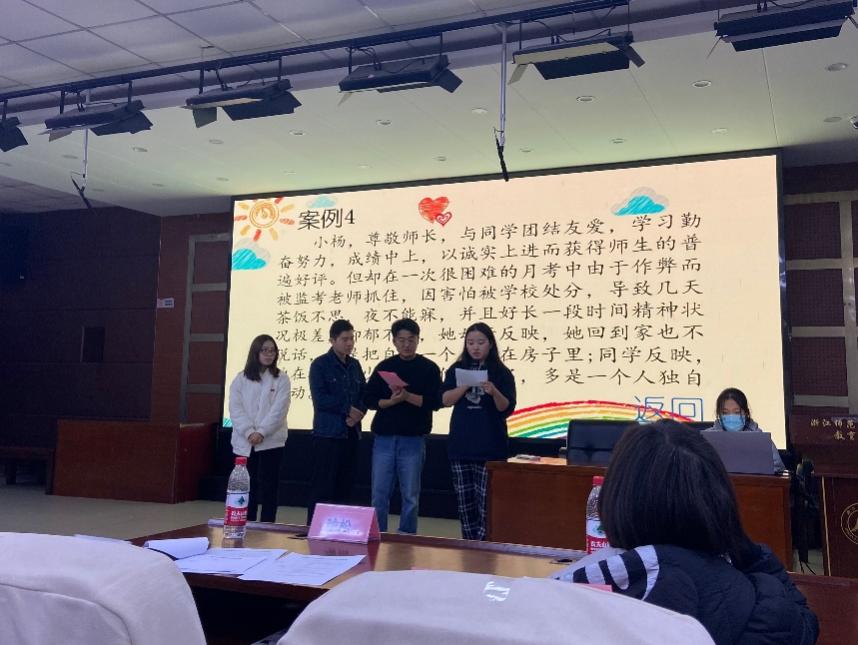 最后的案例分析环节,各个小组继紧锣密鼓的筹备之后,纷纷整装待发,轮流上台论述观点。异地恋的感情受挫,考试作弊的心理崩溃,毕业工作的处处碰壁…...成员们细致严谨的论证,贴合实际的引用,对案例多方面多角度的分析加上解决方式的详细举例,一个个观点的精彩输出让观众叹为观止,也给予了大家新的思考和启发。