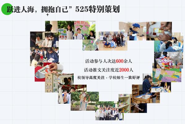 温岭第四中学的同学们在实习期间通过发布主题-修订成稿-听课教研精心打磨教案,完成了7个主题30份6万余字的原创教案设计;实习组一共听课105节,班级授课64节,完成心理社团授课8节,在指导老师的带领下进行教研活动40余场;中午接待学生开展心理咨询,共接待了咨询访谈 61 次;晚上进行备课和心理活动策划;开展学生考前心理调查、学生心理健康调研和学校心理健康建设满意度调研;在10周期间先后开展了以“夜空中最亮的星”为主题的的生涯规划活动、以“跃进人海,拥抱自己”为主题的525特别策划活动和温岭市亲子心理研学活动,活动参与人次达600余人,推文关注度近2000人。实习组各项工作赢得了学校师生一致好评。