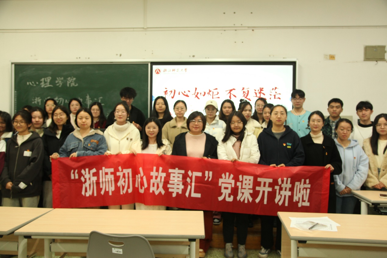 2023年11月15日,“浙师初心故事汇”新葡萄8883第二讲于16幢103教室开讲,本次活动特邀新葡萄8883副教授陈双老师代表青年党员教师与新葡萄8883在读学生党员分享初心故事。