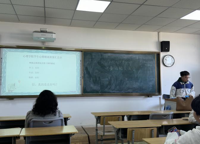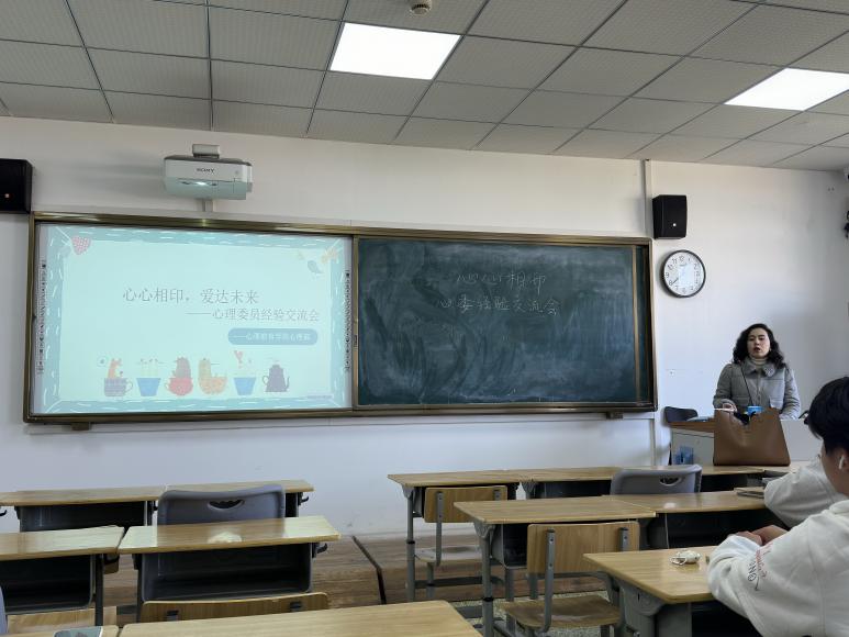 第三部分是心理212班的吴苏苏同学分享自己的工作经验。她为心理委员们介绍了自己以前所举办的心理班会,让心理委员们对心理班会的流程更加熟悉,并鼓励心理委员向同学们进行晨间问候、天气预报等,在生活中处处关心同学。同时,她分享了一些心理委员培训平台,旨在让心理委员能够通过更多的渠道学习心理学知识,从而更好地履行自己的工作职责。