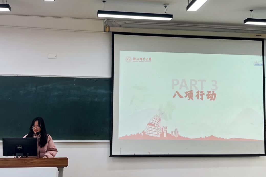 首先由吴雨晴开展思政教育,她以习近平总书记在第三次“一带一路”高峰论坛的重要讲话精神为切入点,通过回顾十年和八项行动让成员们深刻了解会议精神,提高我院学生工作者的思想水平。