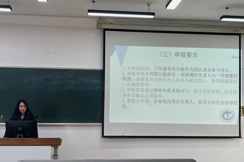 会议的第二部分是科研宣讲,该部分由瞿珊展开,她鼓励学生工作者们积极投身于科研工作中,营造良好的科研学习氛围。