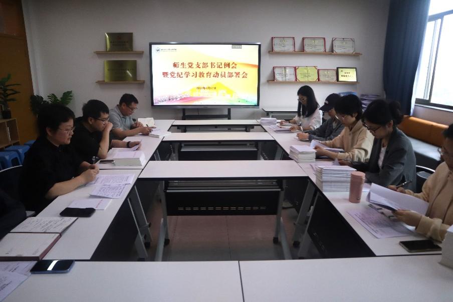 2024年4月17日下午,新葡萄8883于17幢711会议室召开党支部书记例会暨党纪学习教育启动部署会。学院党委书记马莉主持会议,各师生党支部书记参会。