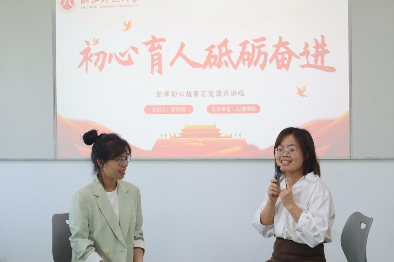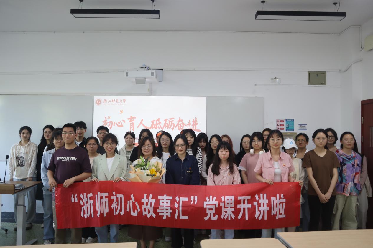 2024年5月8日,“浙师初心故事汇”新葡萄8883第三讲于16幢207教室开讲,本次活动特邀新葡萄8883罗秋铃老师代表青年教师党员与新葡萄8883在读学生党员分享初心故事。
