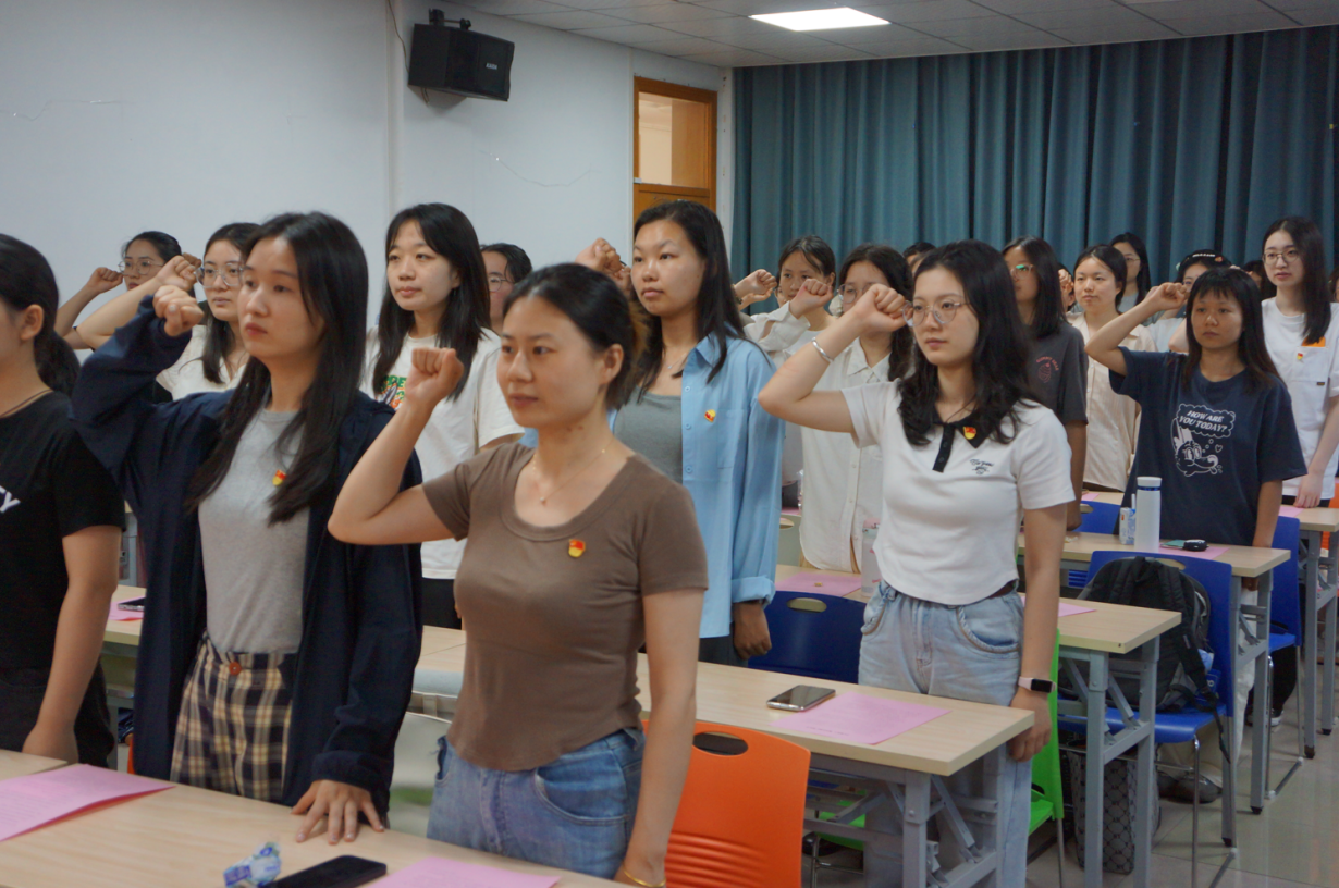 最后,在喻松老师的带领下,全体师生党员重温入党誓词,回顾入党时的庄严承诺。
