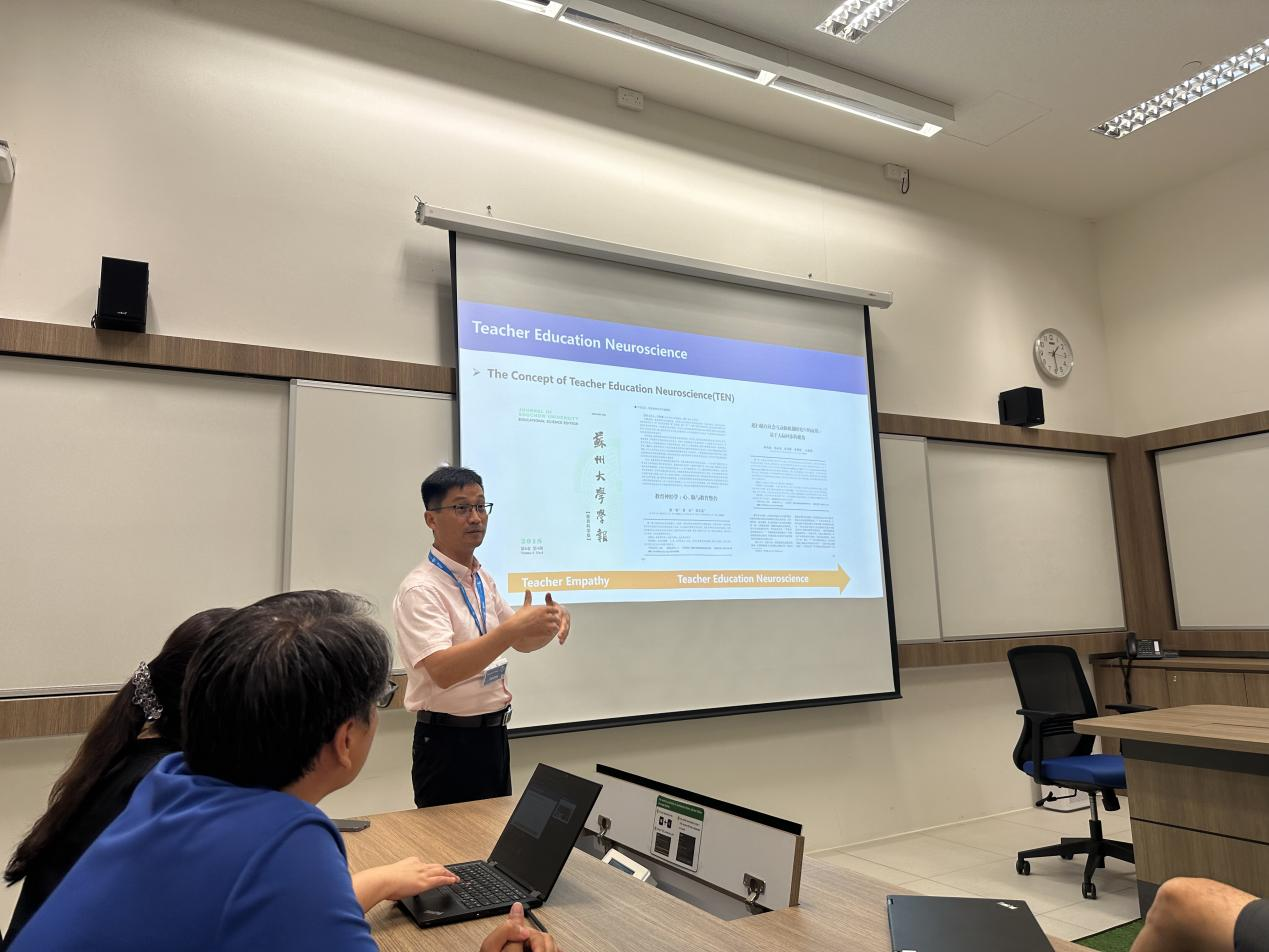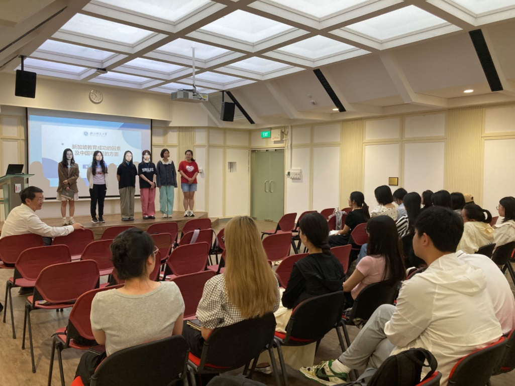 8月14日,孙院长和领队滕静老师带领研学团代表前往新加坡国立大学心理学系进行交流。期间,孙院长与新加坡国立大学心理学系系主任Goh和丁晓攀老师进行了深入会谈。双方介绍了各自学院的发展、研究方向和学术成果,孙院长重点介绍了新葡萄8883官网AMG在教师教育神经科学和心理健康重点实验室的情况,Goh主任和丁老师特别指出,新加坡国立大学在博士项目的申请过程中,更加重视申请者的科研经历而非科研成果,鼓励新葡萄8883的本科生和研究生积极参与科研项目,提升科研能力,以增强申请博士项目的竞争力。孙院长诚挚邀请Goh主任和丁老师未来到新葡萄8883参访,双方均表示将积极探索进一步的合作机会,为双方未来的学术发展开辟了新路径。