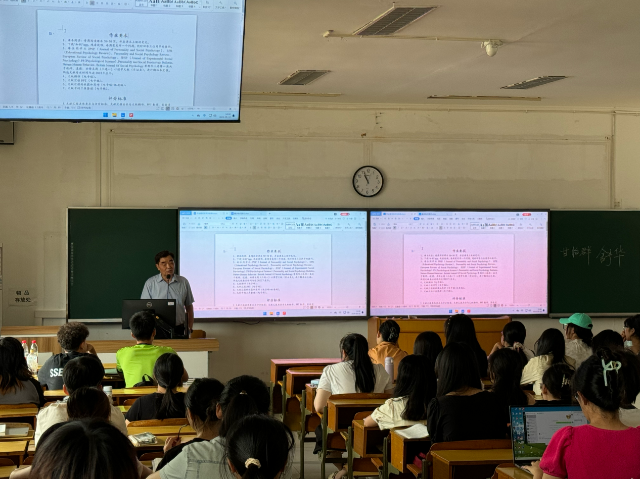 浙江师范大学资深教授乐国安老师为新葡萄8883本科生讲授《社会心理学》开学第一课。乐国安教授与学生分享了社会心理学在中国的发展以及如何高效学习社会心理学的方法。他指出,学习社会心理学,应当有扎实的知识储备,以构建对复杂社会现象的全面理解;应当与实际社会问题深度结合,以理论学习指导具体实践;应当紧密结合现代科学技术,以先进的研究方法推动学科创新。
