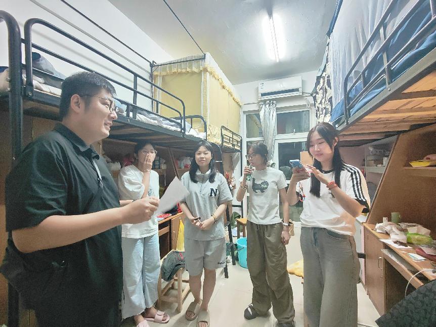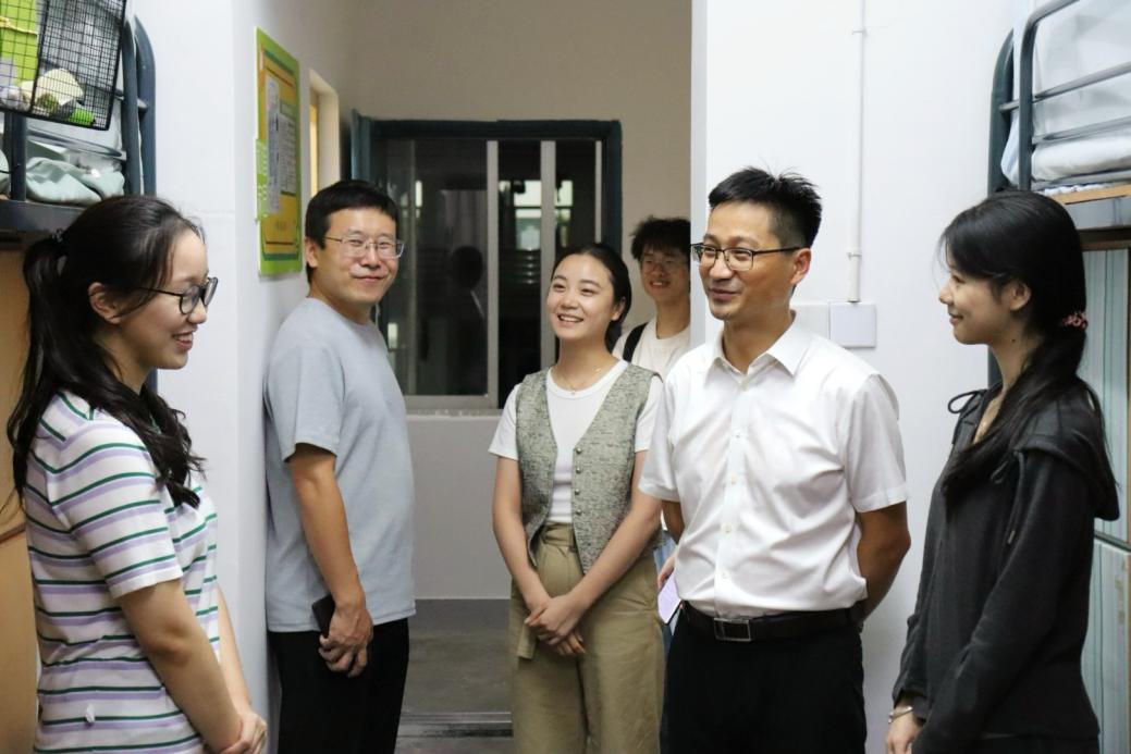 9月15日晚,浙江师范大学党委副书记傅关福来到新葡萄88832024级新生寝室进行走访慰问。新葡萄8883院长孙炳海、党委书记马莉、联合教育学院党委书记徐展斌陪同走访。