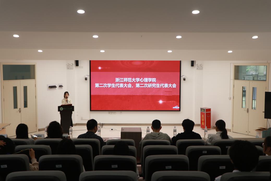 1016日中午,浙江师范大学新葡萄8883第二学生代表大会、第次研究生代表大会于16108路演室顺利召开,新葡萄8883党委委员、副院长贾磊,学院团委书记兼学工办主任喻松,辅导员萨伊甫加马丽·依马木、柏战、董俐伶出席大会。23名本科生代表26研究生代表参加本次会议