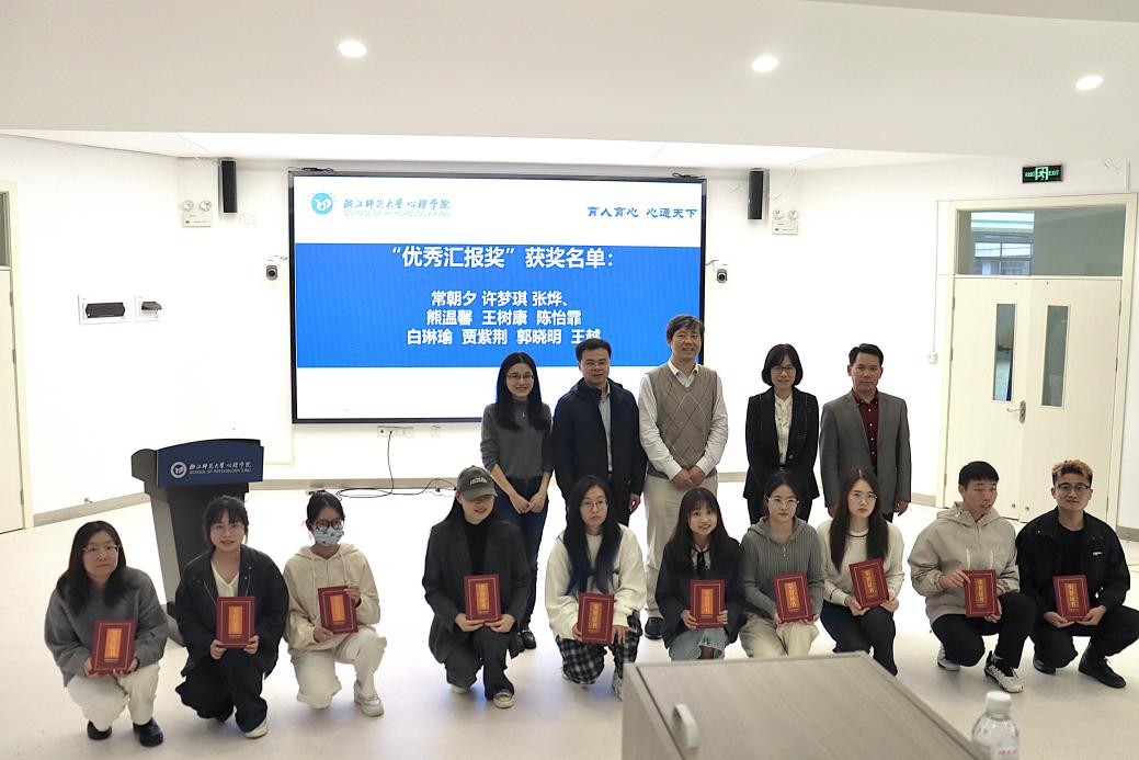 最后,现场与会专家为常朝夕等17位在学术汇报中表现优异的同学颁发“优秀汇报奖”。这不仅是对同学们科研能力和学术水平的认可,更是对所有走在学术道路上的心理学子们的一种激励和鞭策。