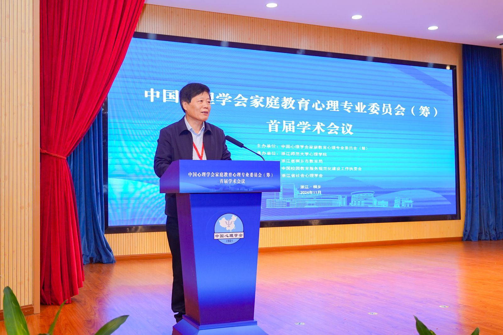 中国心理学会理事长苏彦捷教授代表中国心理学会对本次会议的顺利召开表示祝贺,表达了对中国心理学会家庭教育心理专业委员会的期许,希望该委员会能在未来的家庭教育专业研究和实践中为国家解决实际问题,并再次预祝会议的顺利召开。