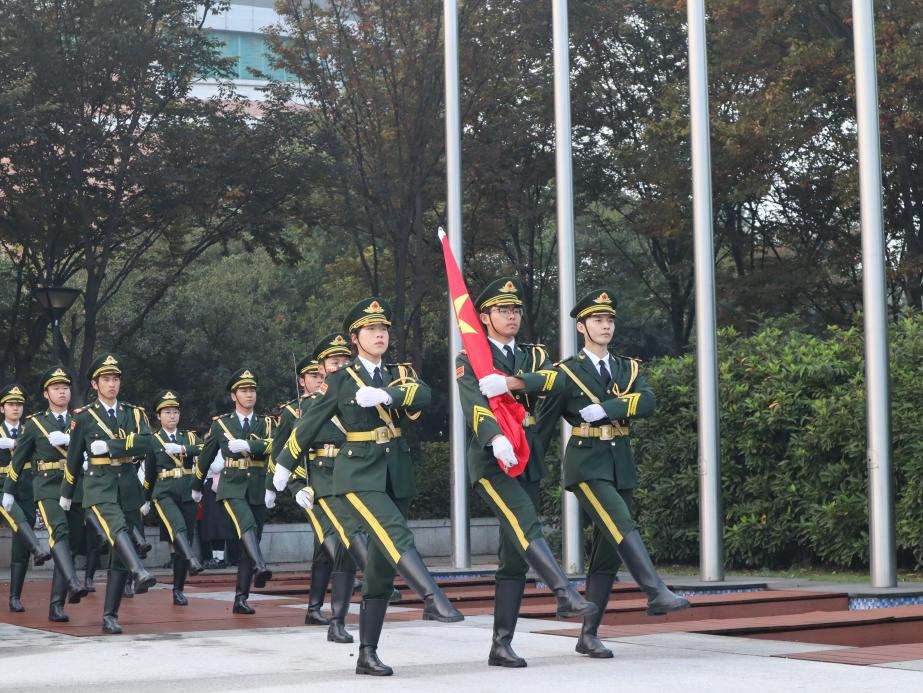 上午7时,升旗仪式正式开始。国旗护卫队迈着铿锵有力的步伐,护卫着鲜艳的五星红旗缓步入场。伴随着激昂的国歌声响起,全体肃立,五星红旗在众人的瞩目下冉冉升起。
